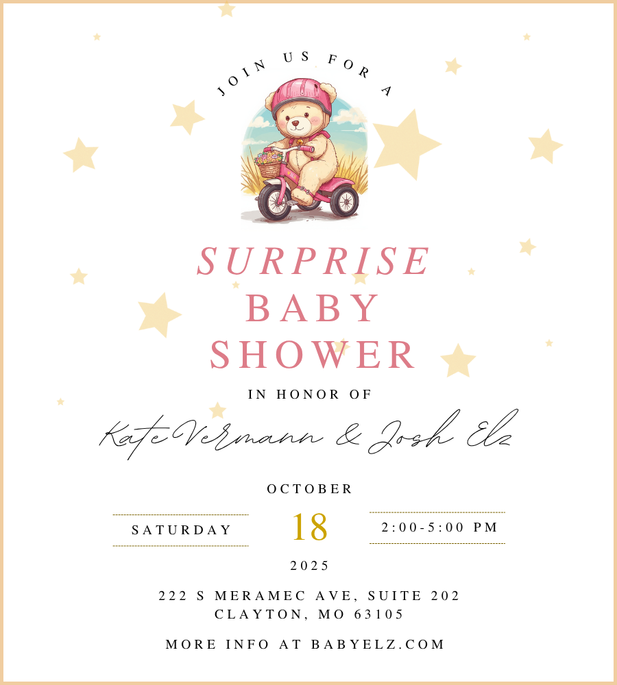 Join us in a joyful surprise gathering to honor Kate, Josh and their new arrival as they prepare to expand their family. Kids and other loved ones welcome!